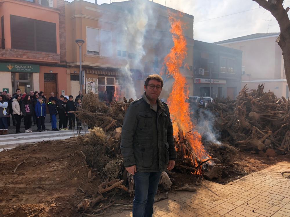 Tras el volteo de campanas y el lanzamiento del chupinazo Marco Ibarz, alcalde de Zaidín, ha sido el encargado prender el fuego que permanecerá encendido hasta el martes 17 de enero, día del San Antón