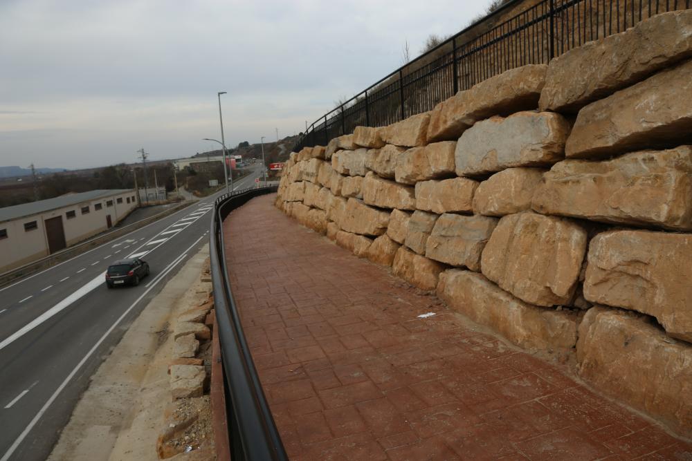 Los trabajos se iniciaron a finales del pasado mes de enero y han consistido en la construcción de un muro en el que se ha integrado un paso peatonal de 2,5 metros de anchura iluminado. De esta manera, apunta el alcalde de Zaidín Marco Ibarz, “se evitan posibles desprendimientos desde la ladera a dicha vía de comunicación que registra un volumen de tráfico alto y se protege a los peatones, que hasta la fecha circulaban por el arcén hasta la parada del autobús” además de una mejora estética evidente en el acceso a la localidad.